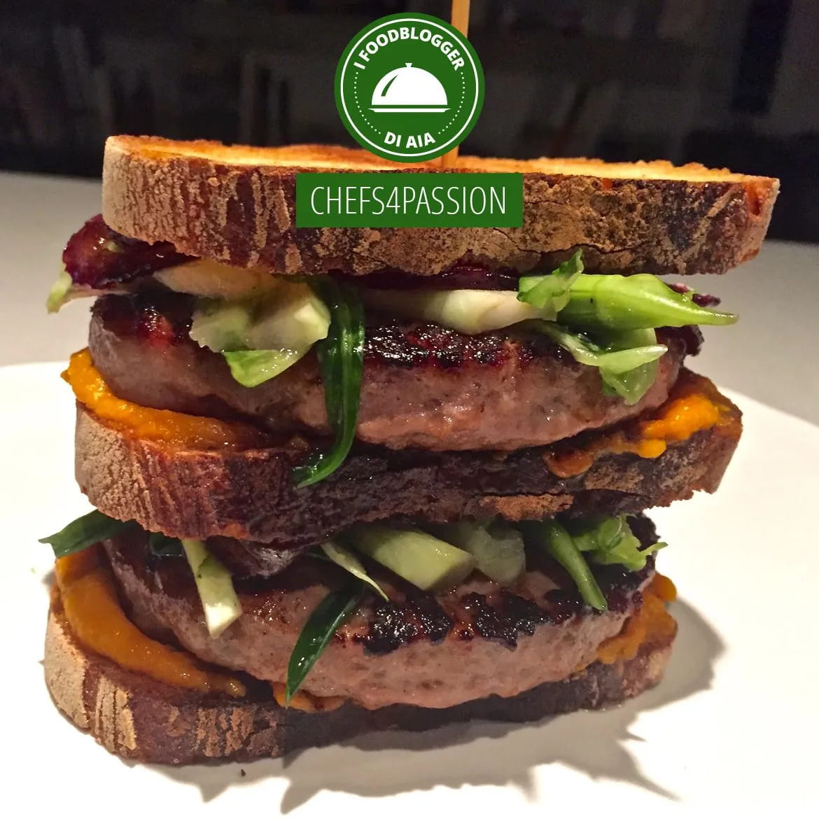 Club Sandwich Prinz des Herbstes ist der Name des Rezepts, das Chefs4Passion für uns gedacht hat! Ein Gericht zubereitet mit allen Geschmacksrichtungen und Farben des Herbstes, das geschickt den kräftigen Geschmack des Schweine- und Rindfleischburgers mit der Zartheit und Süße von Kürbis und roter Zwiebel aus Tropea kombiniert.