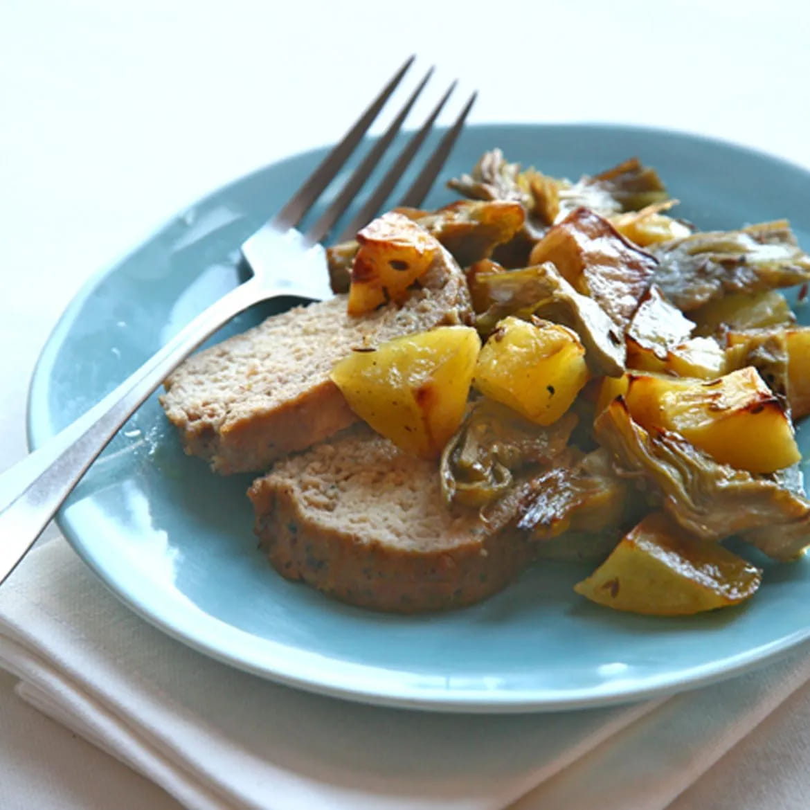 - Großmutters Hackbraten mit Kartoffeln und Artischocken