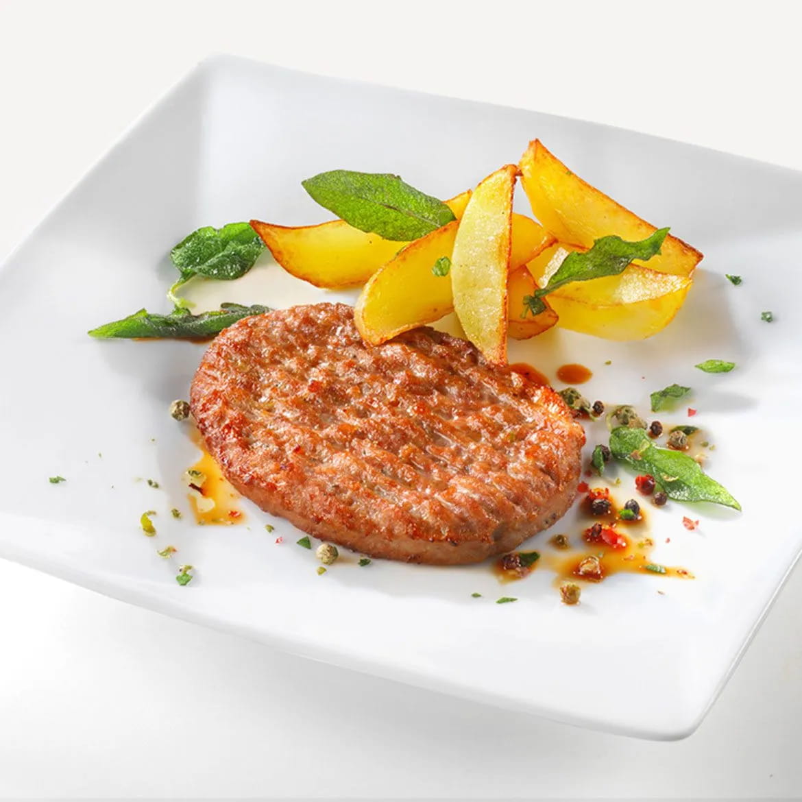 - Truthahn-Burger mit Kartoffeln und frittiertem Salbei