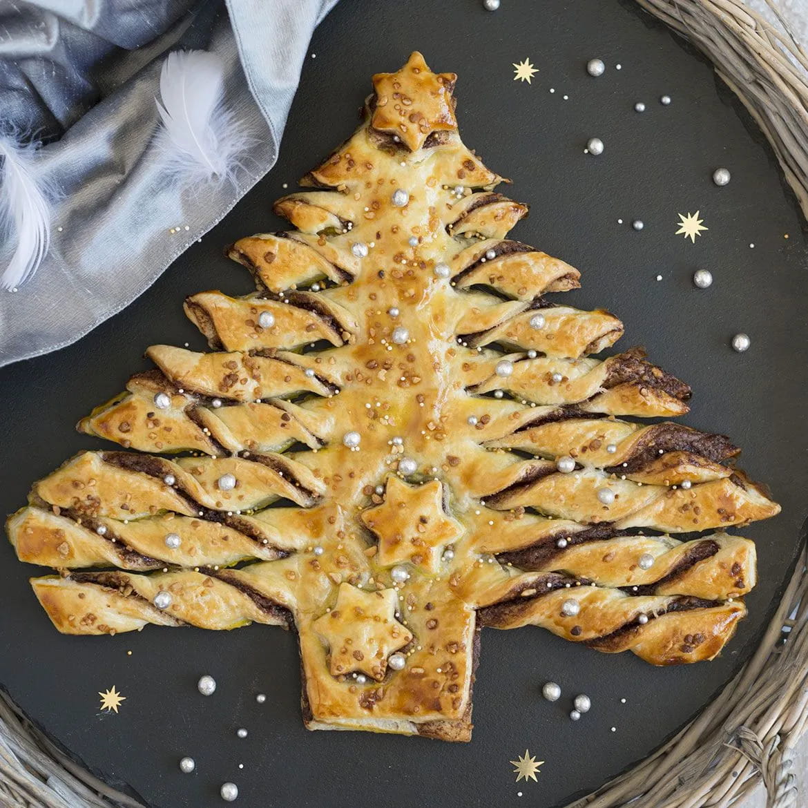 Das Rezept für den Weihnachtsbaum mit Blätterteigrosen ist die originelle und leckere Lösung, die bei einem Weihnachtsbuffet serviert werden kann.