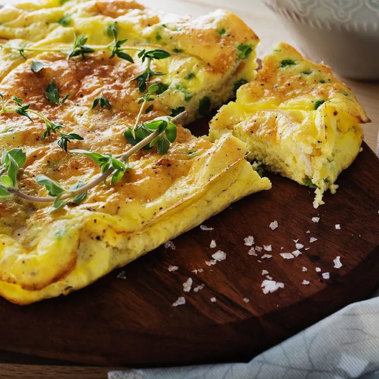 Serve your oven-baked fluffy omelette hot or at room temperature, stuff it with soft cheese, cold cuts and grilled vegetables!