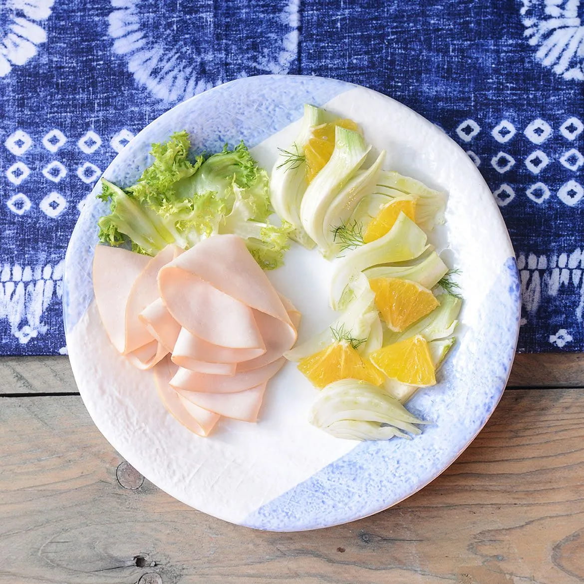 Sistemate nel piatto le fettine di aeQuilibrium di Pollo al Forno AIA, unite il finocchio e l’arancia e condite con la salsa ottenuta. Per decorare aggiungete i ciuffetti di insalata e le zest di agrumi.