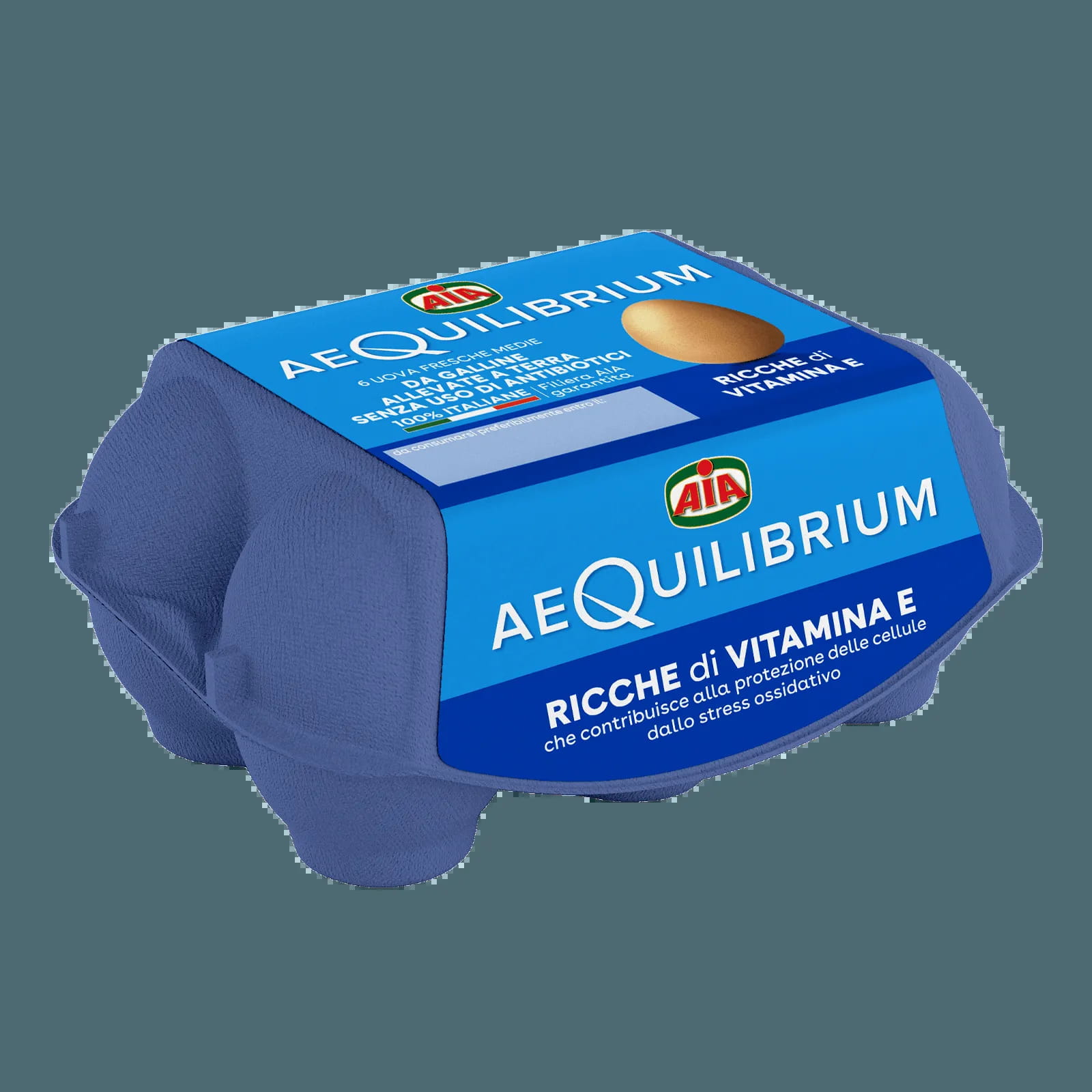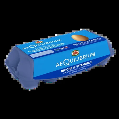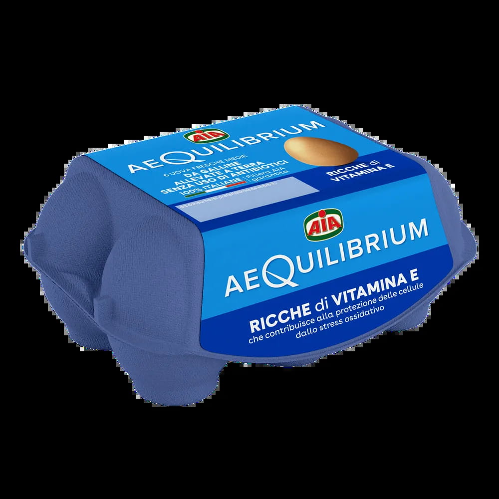 Quattro uova AeQuilibrium da galline allevate a terra e senza uso di antibiotici. Ricche di vitamina E che contribuisce alla protezione delle cellule dallo stress ossidativo.