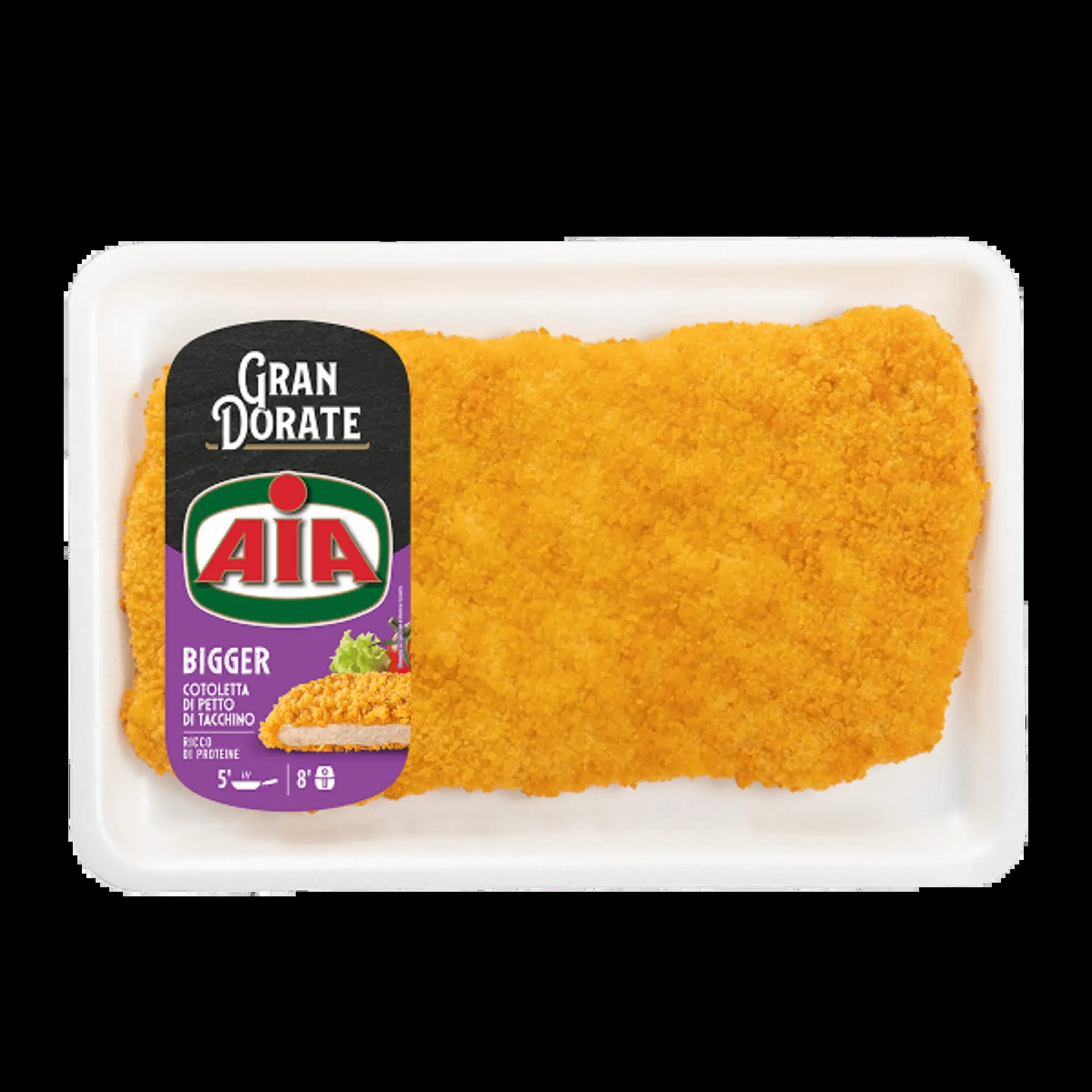 Preriscaldare la friggitrice ad aria per 2 minuti a 190°C., una volta calda, disponete la cotoletta “Bigger” nel cestello e cuocetela per 8 minuti.