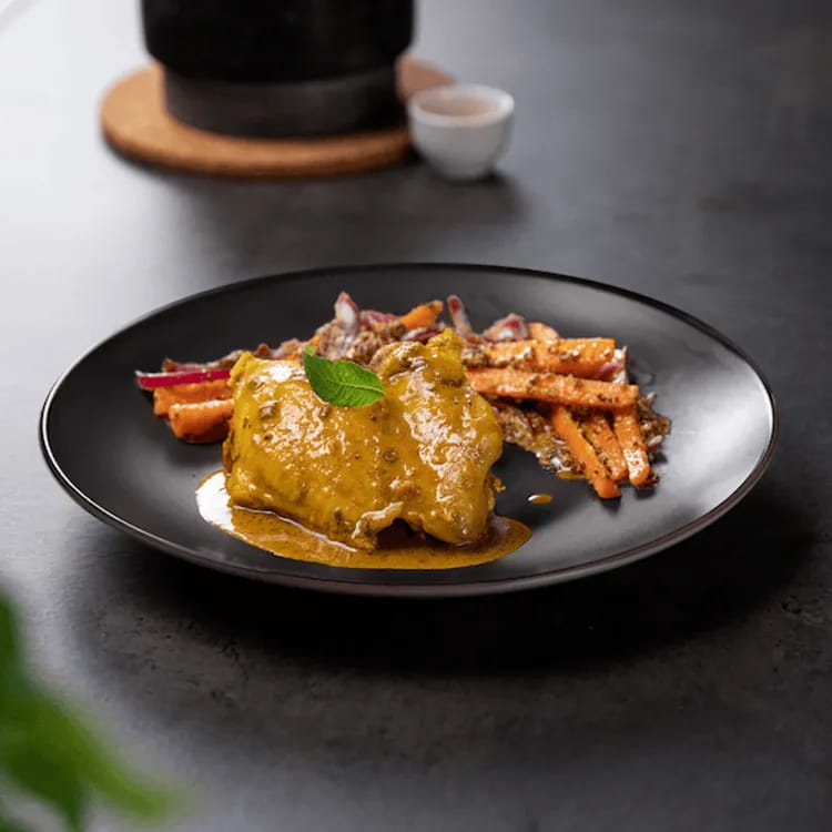 Cucinate le cosce di pollo senza pelle e ossa come più vi soddisfa, in pentola o al forno, con dell'olio extravergine d'oliva o con una noce di burro, sfumando con del vino bianco ed infine guarnendo con delle patate saltate in padella.