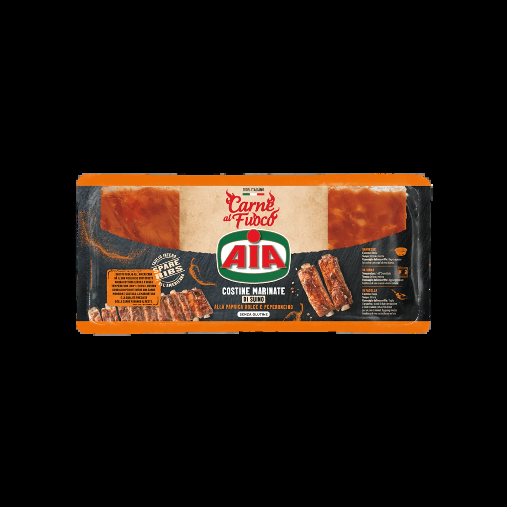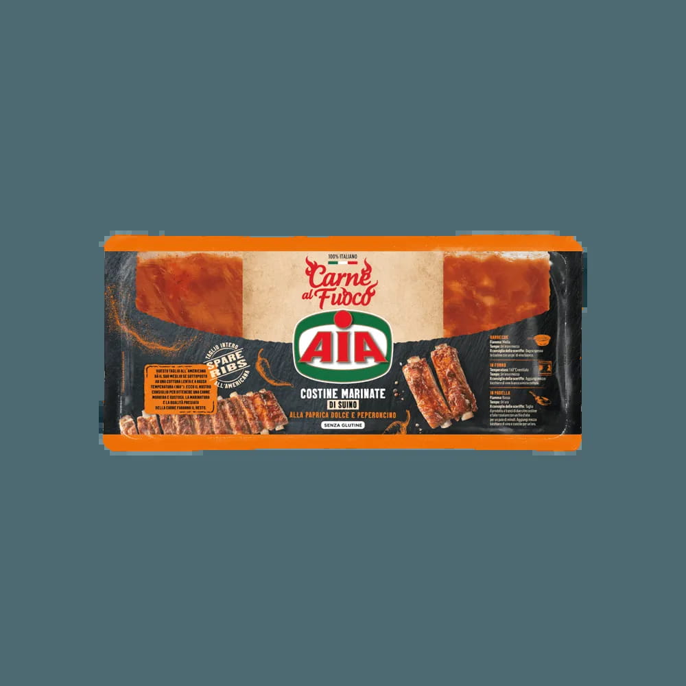 Carne al fuoco, costine marinate di suino alla paprica dolce e peperoncino speziate ad arte, Spare Ribs - Taglio intero all'americana, Ideali in forno griglia e padella, Senza glutine, Speziate ad arte.