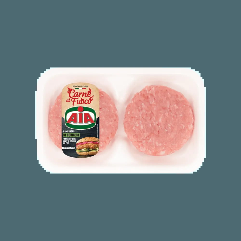 Hamburger di tenera carne di coniglio pronto da cuocere.