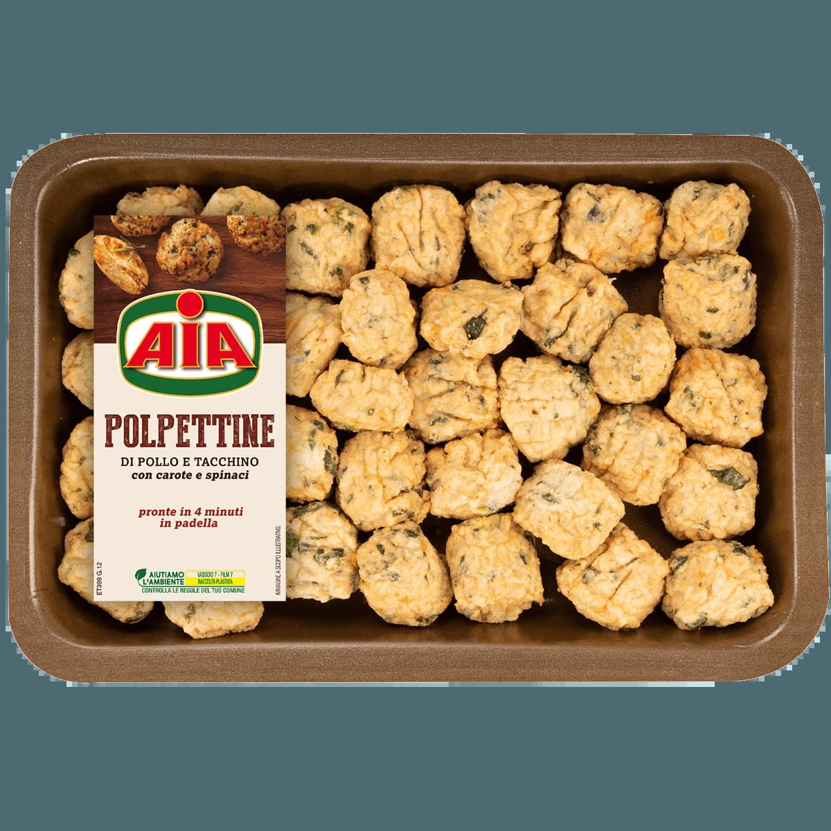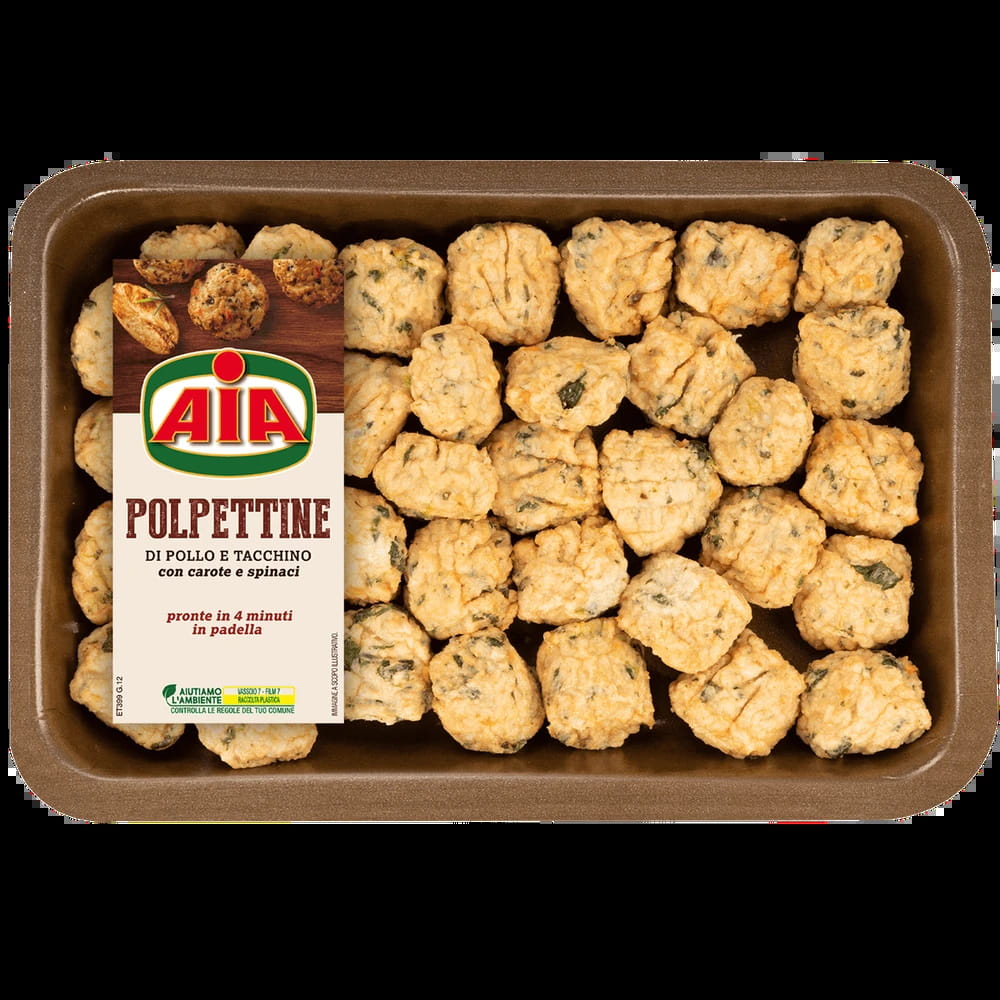 Gustose polpettine con pollo, tacchino, carote e spinaci. Pronte da cuocere in pochi minuti.