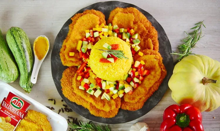 Gustosa cotoletta di filetti di petto di pollo AIA arricchita da un'appetitosa farcitura al formaggio scamorza affumicata.