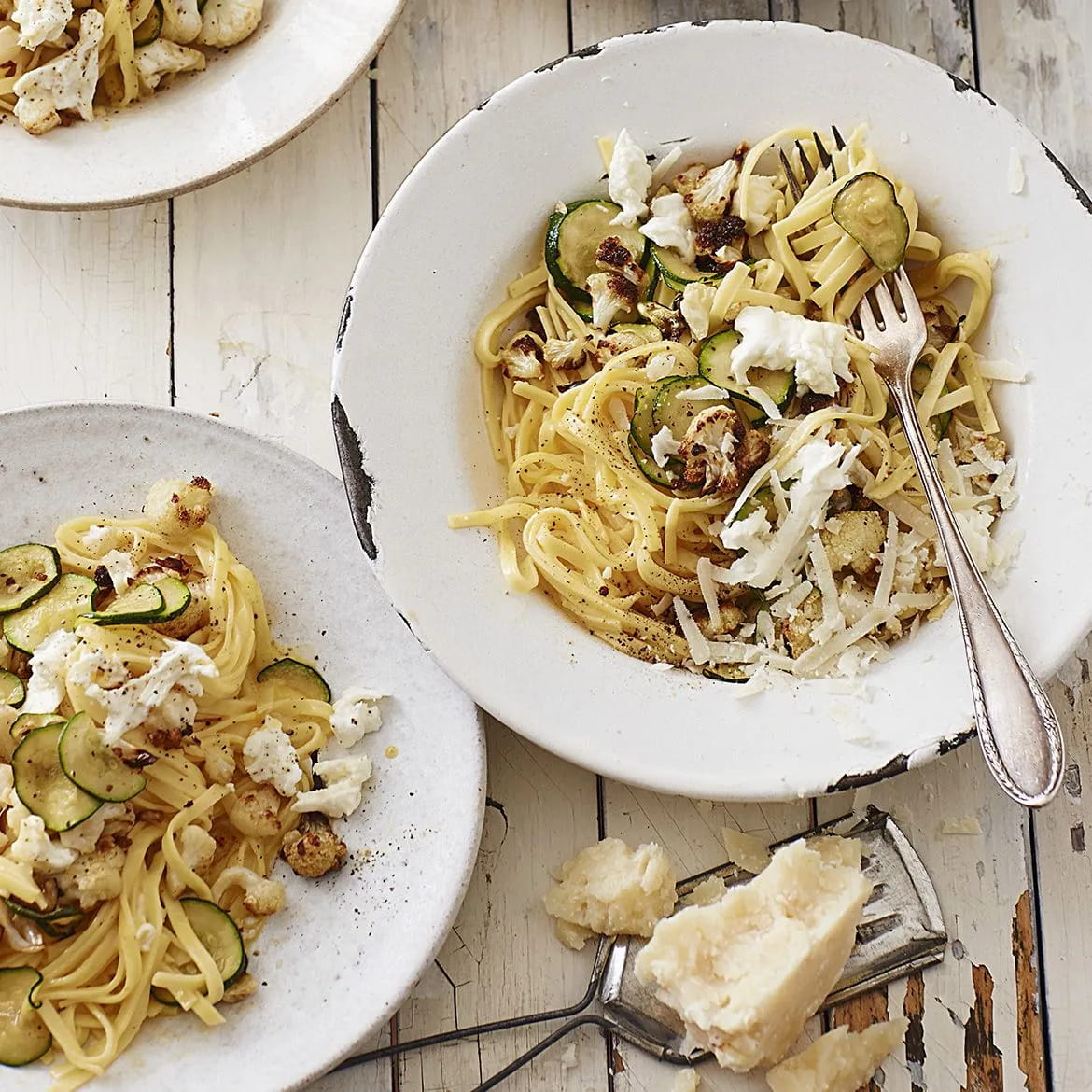 Cuocete la pasta. In una ciotola sbattete le uova con un pizzico di sale e di pepe. Scolate la pasta e aggiungetela alla padella con le zucchine insieme all’uovo sbattuto.