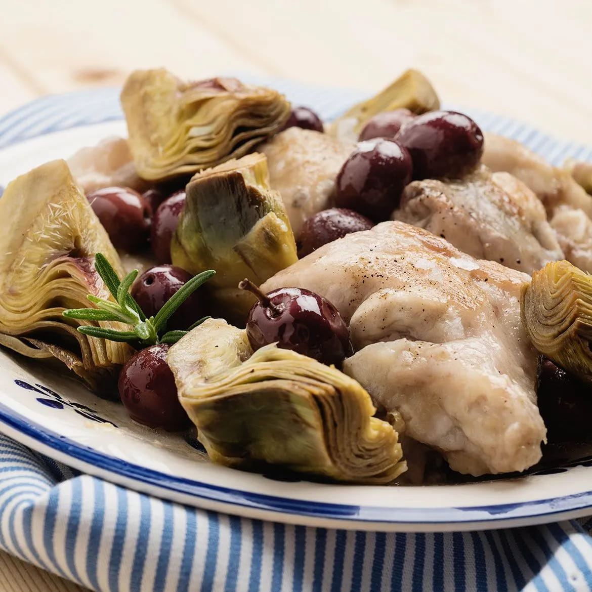 Ecco la ricetta completa del coniglio ai carciofi e olive nere!