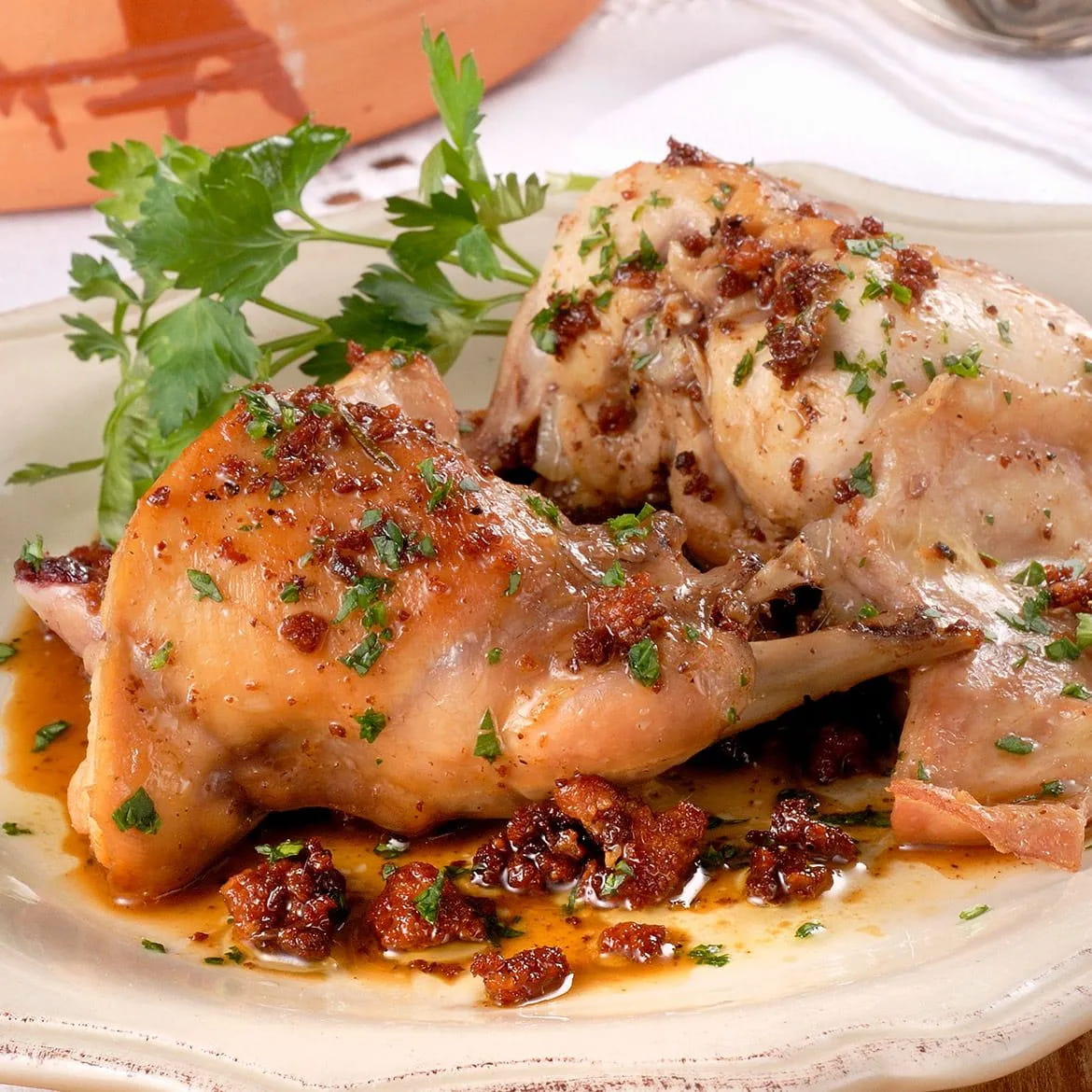 Una volta che il coniglio sarà pronto, togliete il coperchio così che il fondo di cottura possa addensarsi. Il vostro coniglio in umido è pronto per essere servito!