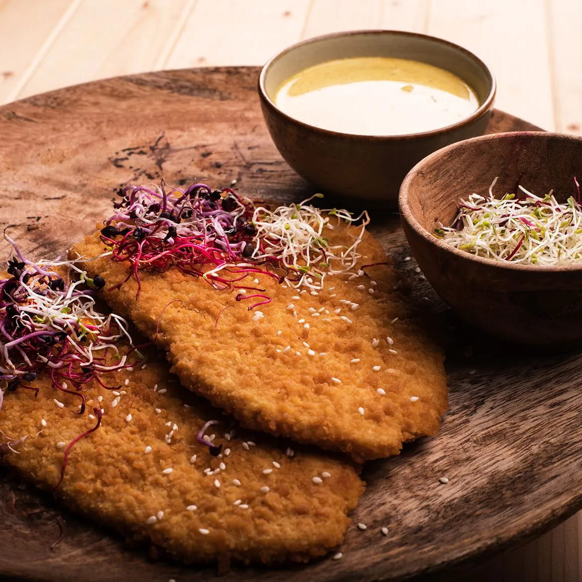 Per rendere ancor più orientale e sfiziosa la cotoletta, ecco arrivare anche i semi di sesamo e la delicatezza dei germogli sakura.