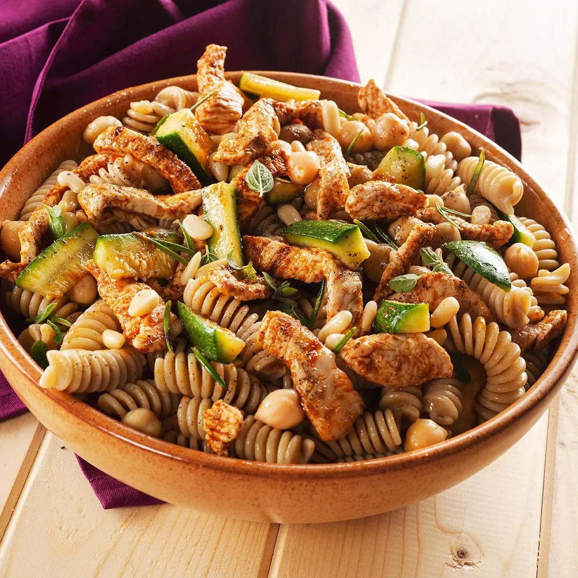 Fusilli integrali con ceci e tacchino