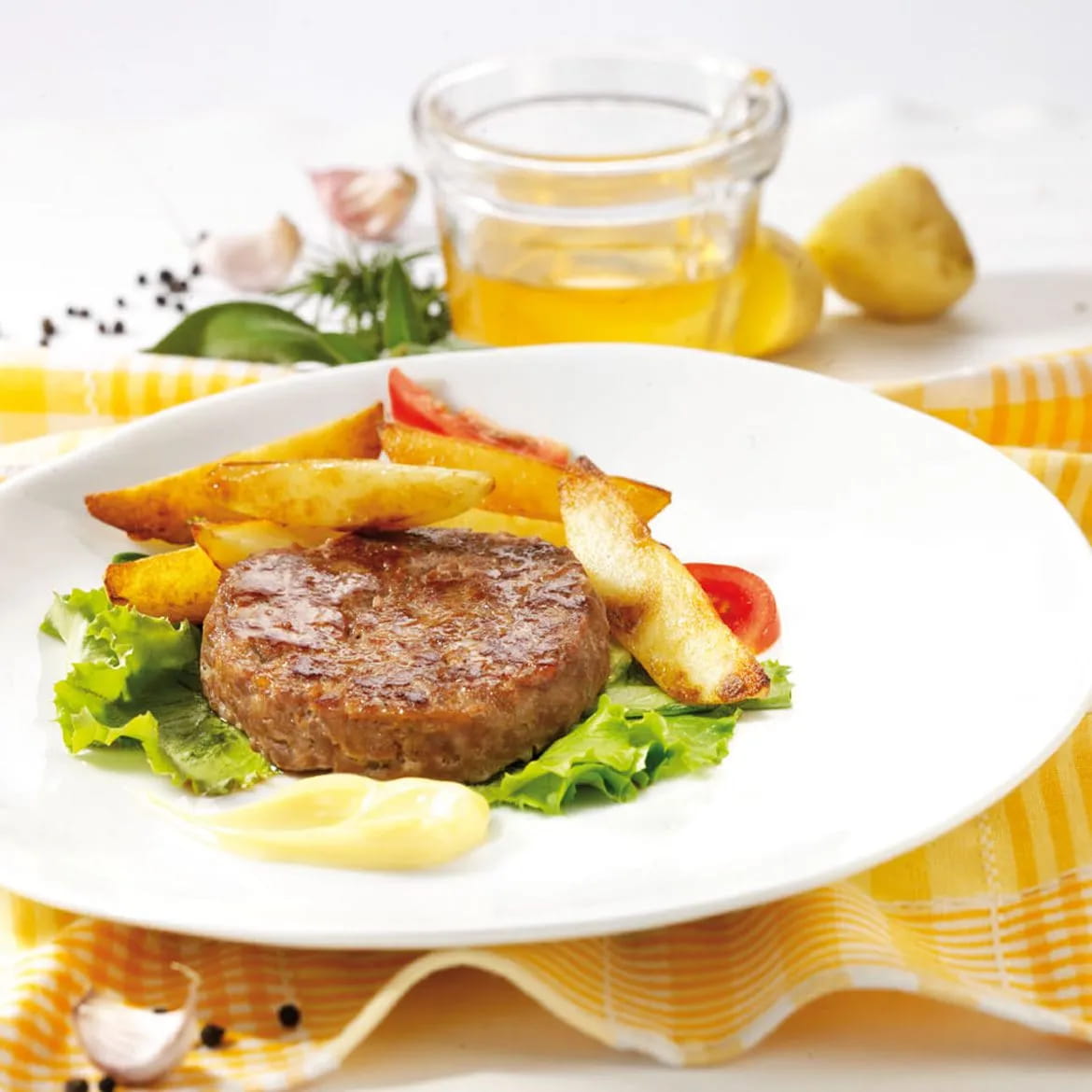 Con gli hamburger di puro suino AIA avrete la certezza di portare in tavola una carne buona e controllata, da accompagnare con patate arrosto fatte da voi.