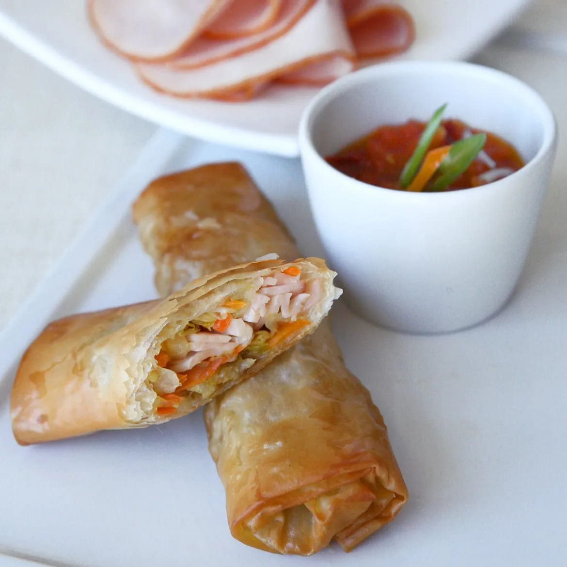 Servite gli involtini primavera al forno con petto di tacchino aeQuilibrium AIA caldissimi e accompagnateli con la salsina agrodolce.