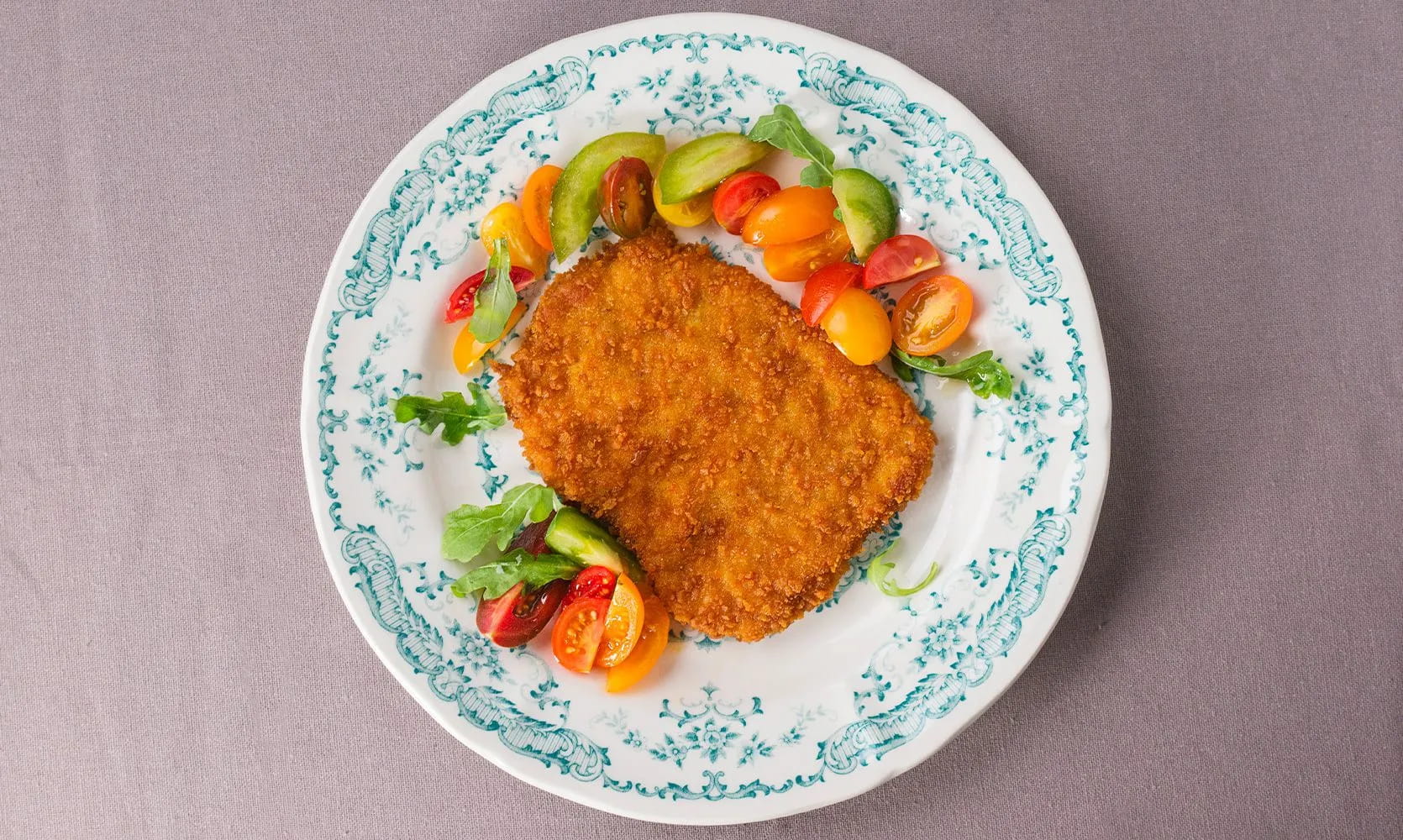 La Milanese con insalata di pomodorini colorati