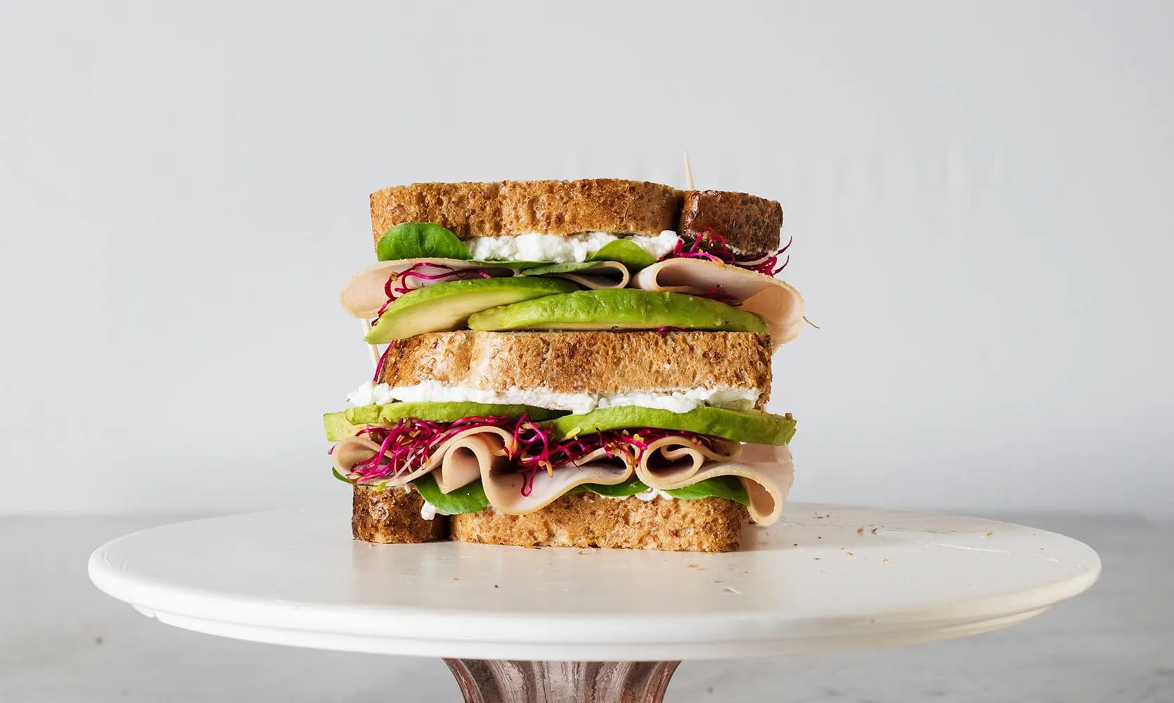 Facile e velocissima da preparare, ecco la ricetta del panino integrale a fette con ricotta, avocado, insalata, petto di tacchino, germogli di barbabietola!
