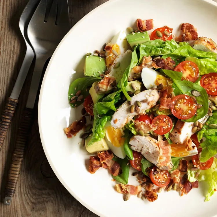 Quando mancano pochi minuti alla cottura della pasta, mettete un filo d'olio in una padella e scaldate la Chicken Salad per circa 3 minuti. Oppure potete semplicemente scaldare il pollo per 2 minuti in microonde.