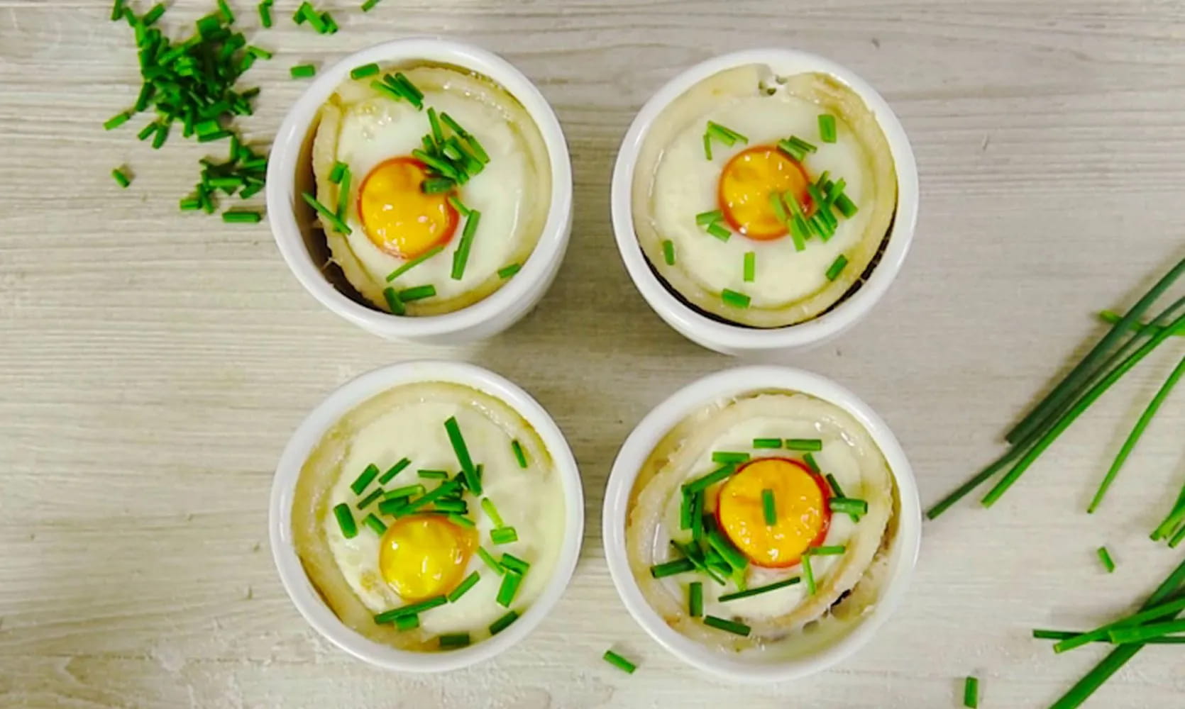 Ecco la ricetta golosissima delle uova in cocotte con funghi, crème fraîchee bacon!